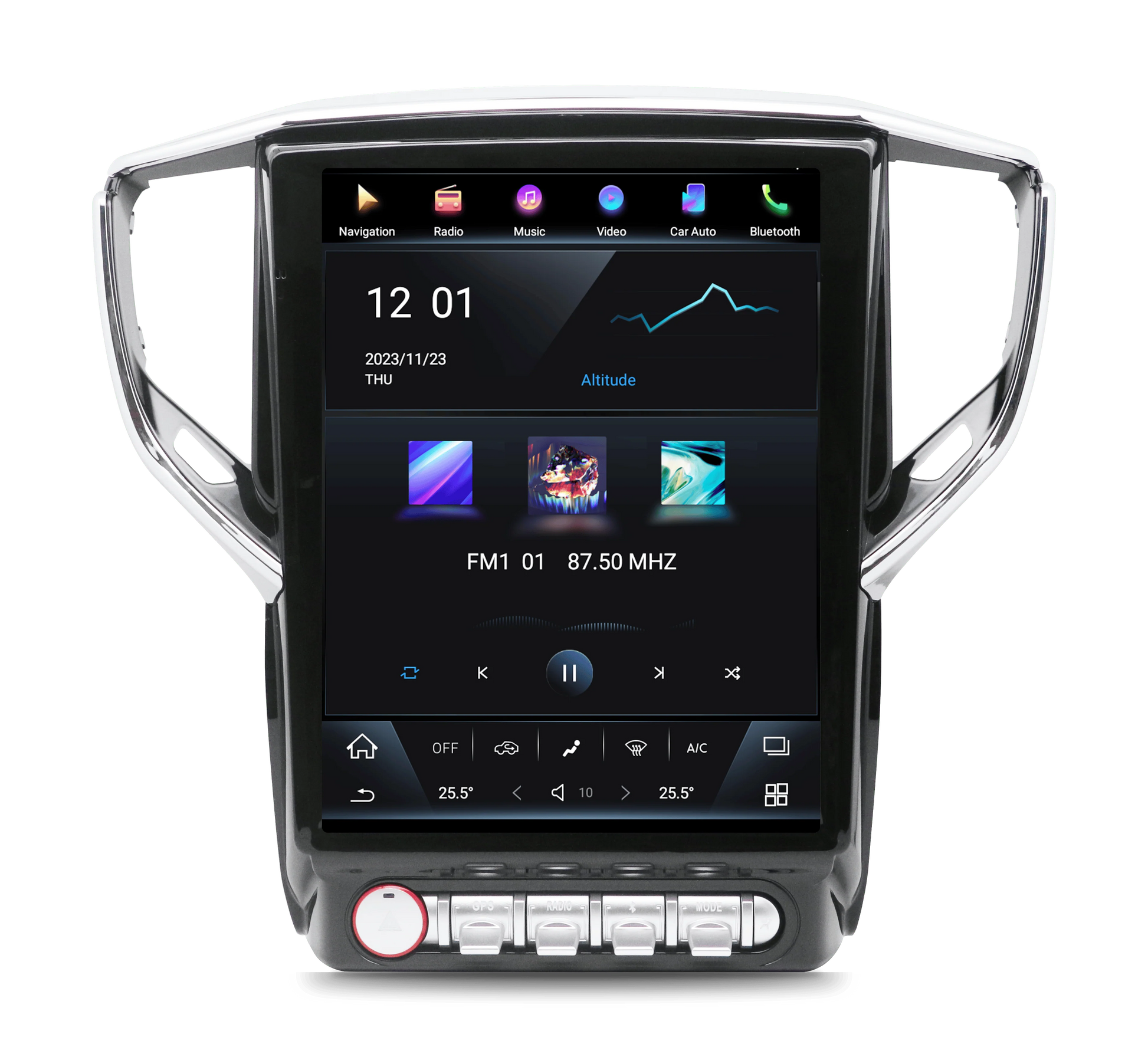 Update your Ghibli's infotainment system with a 12.1" T-style Maserati head unit with Android 13 8gb ram 128gb rom and wireless Apple Carplay and Android Auto with climate control. Featuring distinctive airplane-type flip switches, adds a unique and intuitive control experience to your Maserati Ghibli. Designed to seamlessly integrate with the original style of your car, it enhances your interior with a perfect balance of innovation and respect for the vehicle's design.